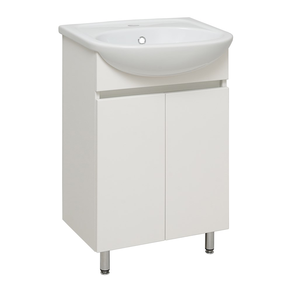 Тумба с раковиной RUNO ЛАДА - модное и оригинальное решение для бюджетного оснащения ванной комнаты. Тумба под раковину ЛАДА (напольная) выполнена в двух цветах - классическом белом и в стильном цвете - графит/серый дуб . Тумба в ванную имеет две распашные дверцы и одну внутреннюю полку. В комплекте идут петли со встроенным доводчиком, 2 хромированные и 2 пластиковые ножки. Тумба для ванной комплектуется керамической раковиной Уют" (500*420 мм). Раковина имеет глубину 18 см. Мебель для ванной RUNO - красота и практичность в мелочах!"