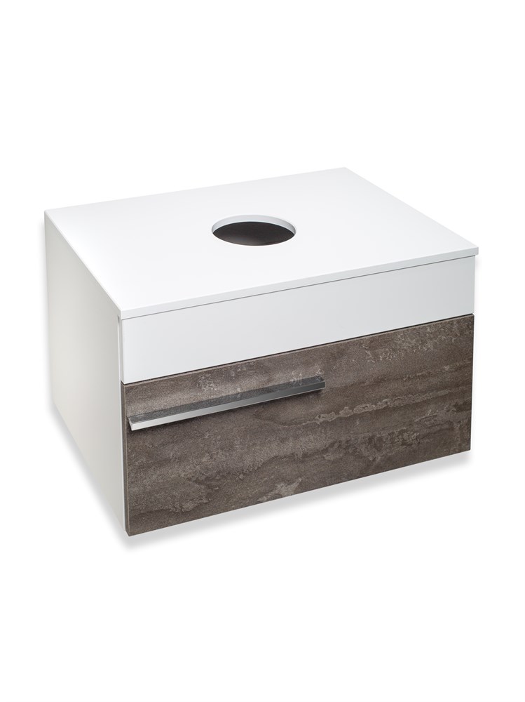 Тумба под раковину в ванную RUNO ВУДЛАЙН (подвесная) - выполнена в ультрасовременном дизайне в цвете железный камень. Тумба в ванную оснащена выдвижным ящиком на шариковых направляющих. Тумба под раковину ВУДЛАЙН гармонично впишется в любой интерьер ванной комнаты. В комплект входят: 1 ручка, навесы для крепления к стене. К тумбе для ванной комнаты подходят накладные керамические раковины: Infinity 60 с чашей прямоугольной формы (600х370 мм), глубиной 12 см; Moduo 50 SQUARE с чашей прямоугольной формы (500х360 мм), глубиной 15 см; Moduo 55 LEAF - асимметричная раковина, которую можно установить любой стороной, дизайнерское решение для нестандартных интерьеров (565х365 мм), глубиной 15 см; Гамма 56 - c глубокой чашей и высокими бортиками, которые отражают современные тренды в дизайне. (560х370 мм), глубиной 18 см. Мебель для ванной RUNO - красота и практичность в мелочах!