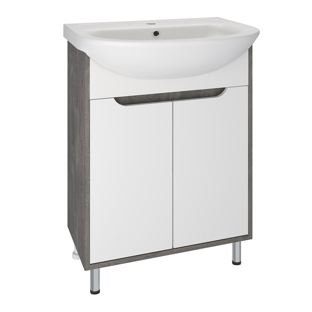 Тумба с раковиной RUNO ЭКО - превосходное решение для современного оснащения ванной комнаты. Тумба под раковину ЭКО (напольная) это стильное сочетание текстуры природного необработанного камня на корпусе с белыми фасадами из ДСП. Тумба в ванную имеет две распашные дверцы и одну внутреннюю полку. В комплекте идут петли, 2 хромированные и 2 пластиковые ножки. Тумба для ванной комплектуется керамической раковиной УЮТ" (610*470 мм). Раковина имеет глубину 21 см. Мебель для ванной RUNO - красота и практичность в мелочах!"