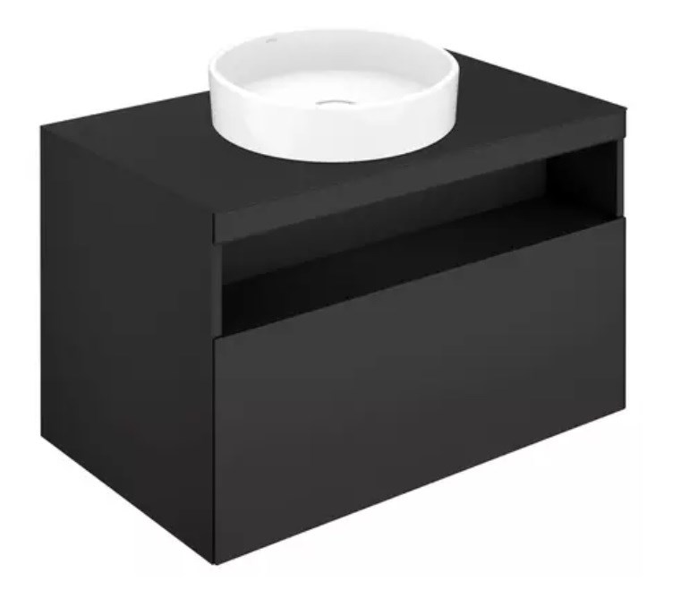 Со столешницей и без отверстия под смеситель, подходит к керамическому умывальнику арт. 32880, 1 выдвижной фронтальный ящик с доводчиком, вкл. пластиковый сифон 1 1/4 x 32.