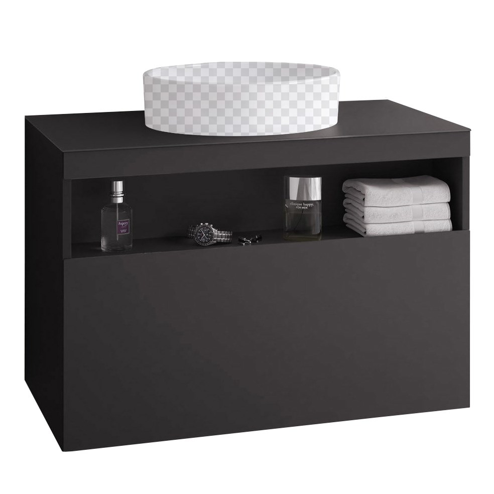 Тумба под умывальник KEUCO STAGELINE, 32863970100, 800x550x490 мм, к/ф: вулканит (ламинир. матовый)/вулканит матовый (стекло)