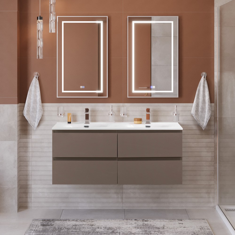 Тумба с четырьмя ящиками и раковиной на две чаши подвесная BelBagno KRAFT 120 Бежевый матовый, раковина BB-8099-120-2