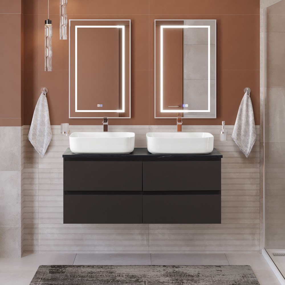 Тумба с четырьмя ящиками и столешницей подвесная BelBagno KRAFT 120 Темно-Серый Матовый, столешница KEP-120-2-MNO