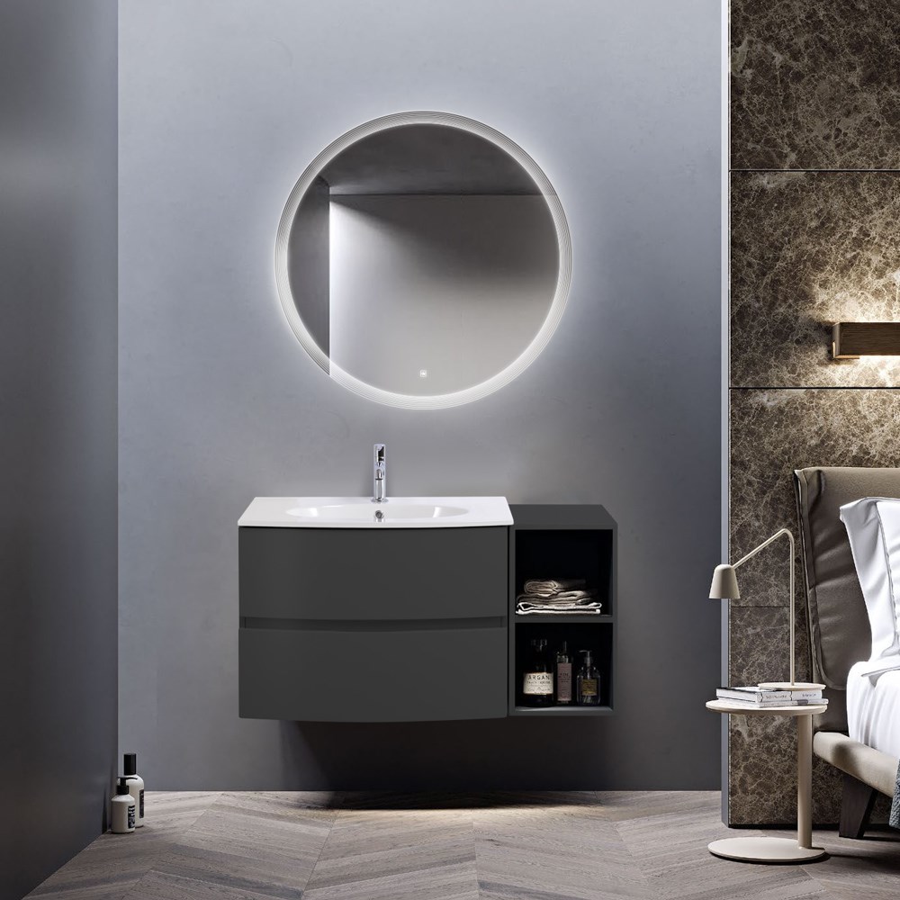 Тумба с керамической раковиной подвесная и открытым шкафчиком CEZARES ELETTRA 104 Grafite, раковина белая
