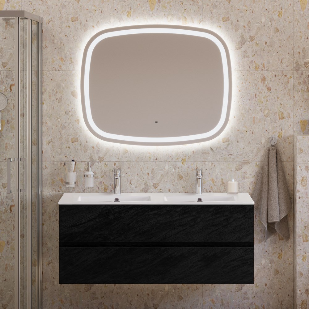Тумба с раковиной на две чаши подвесная CEZARES MOLVENO 46 120 Nero, раковина белая CZR-8070-120-2