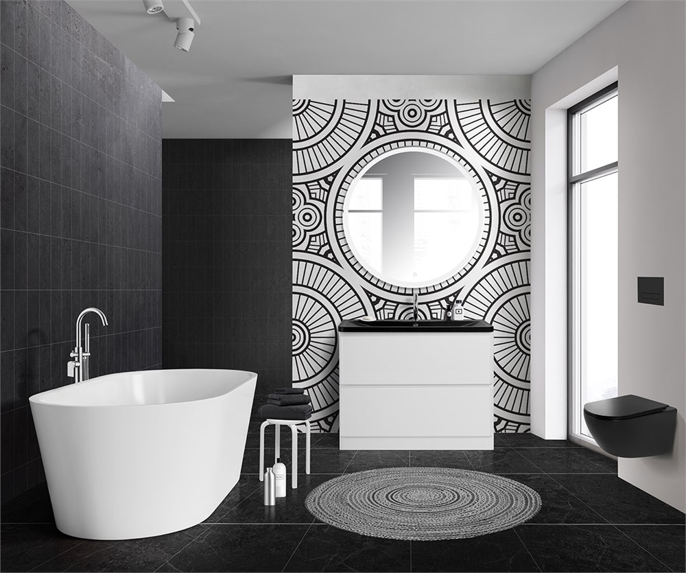 Тумба с раковиной напольная BelBagno ALBANO 100 Bianco Lucido, раковина чёрная