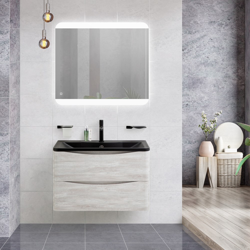 Тумба с раковиной подвесная BelBagno ACQUA 100 Rovere Vintage Bianco, раковина чёрная