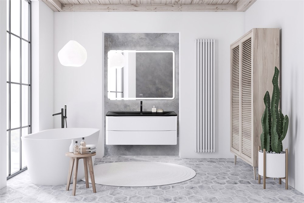 Тумба с раковиной подвесная BelBagno ACQUA 120 Bianco Lucido, раковина чёрная
