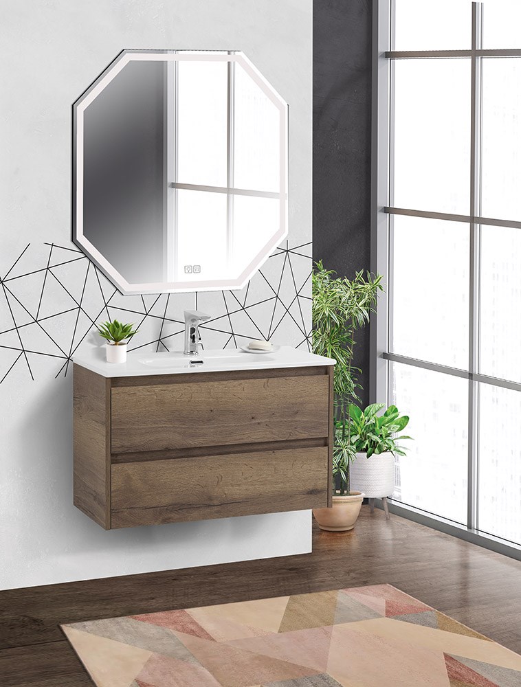 Тумба с раковиной подвесная BelBagno KRAFT 39 80 Rovere Tabacco, раковина белая