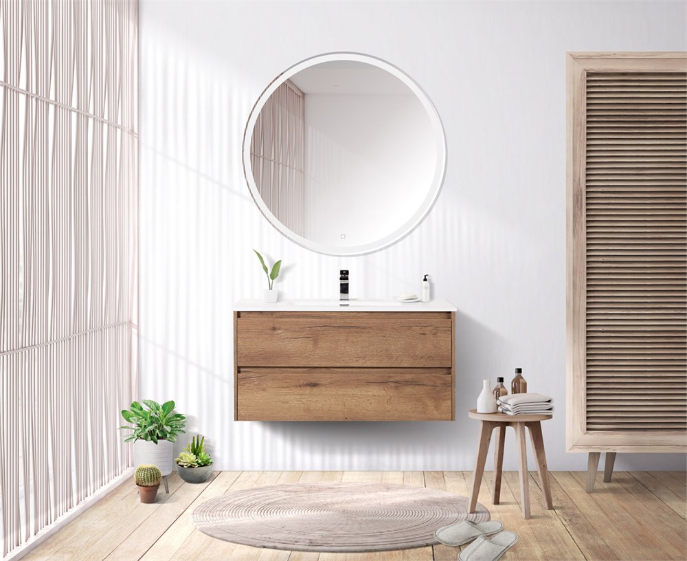 Тумба с раковиной подвесная BelBagno KRAFT 90 Rovere Tabacco, раковина белая