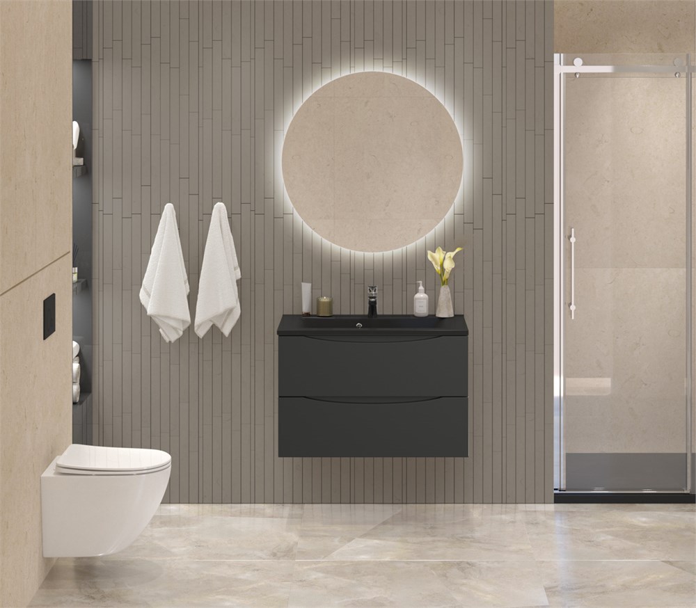 Тумба с раковиной подвесная BelBagno MARINO 80 Nero Lucido, раковина чёрная BB800/450-LV-ART-PR-NERO
