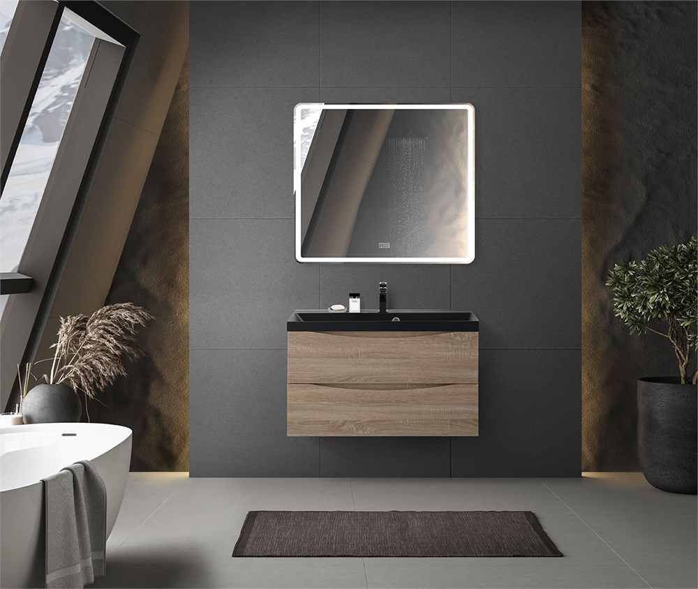 Тумба с раковиной подвесная BelBagno MARINO 80 Rovere Bianco, раковина чёрная