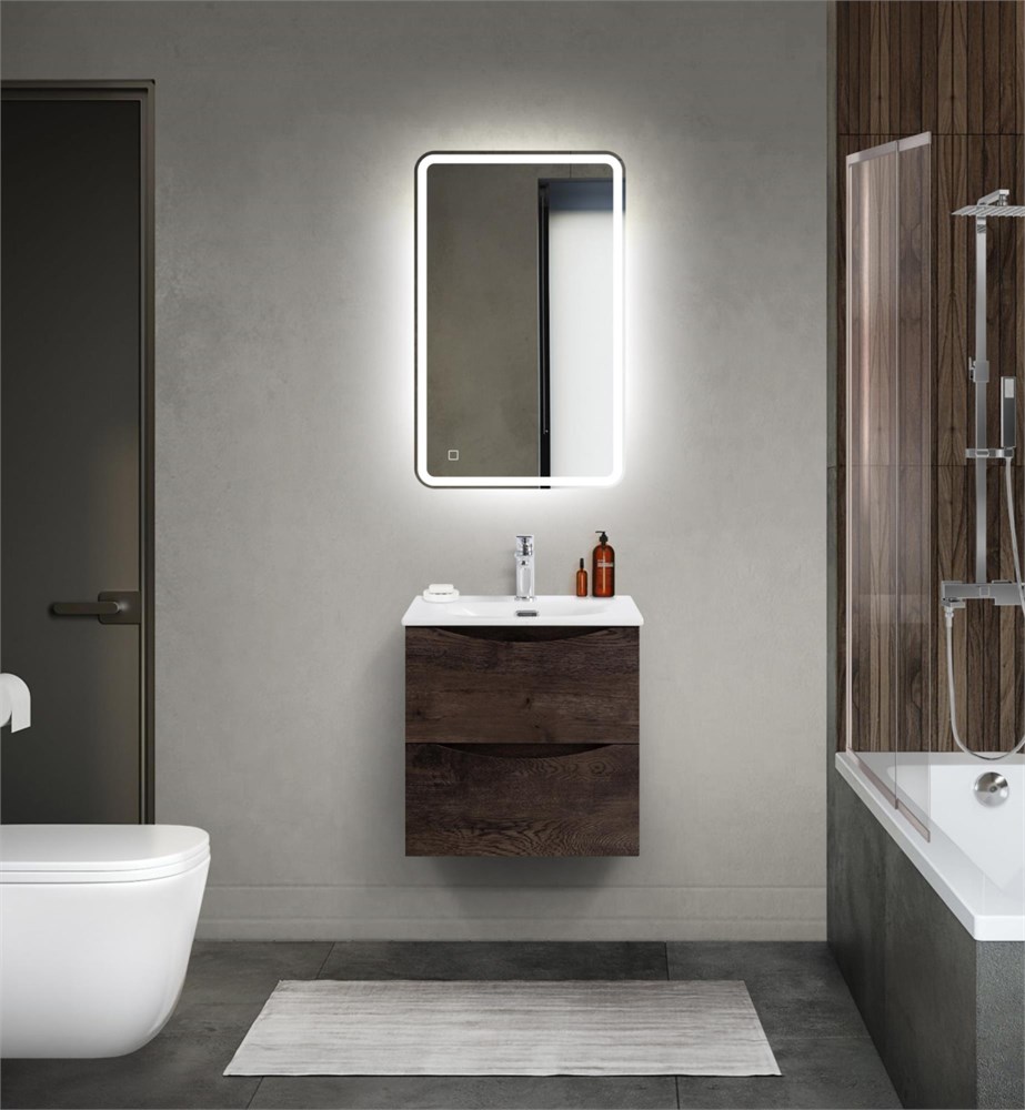 Тумба с раковиной подвесная BelBagno MARINO-CER-MINI 50 Rovere Nature Grigio, раковина белая