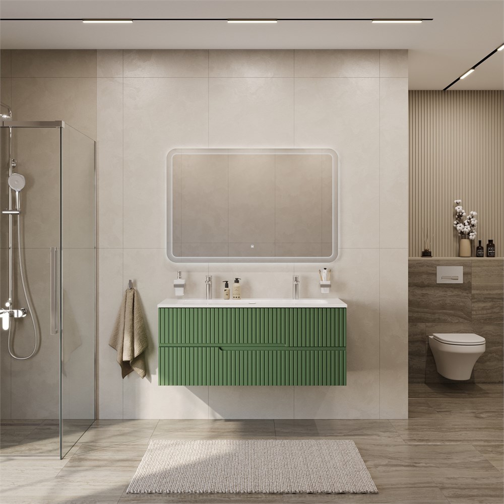 Тумба с раковиной подвесная CEZARES DUET-N 120 Фисташковый Софт, раковина белая CZR-8073-120-1-2