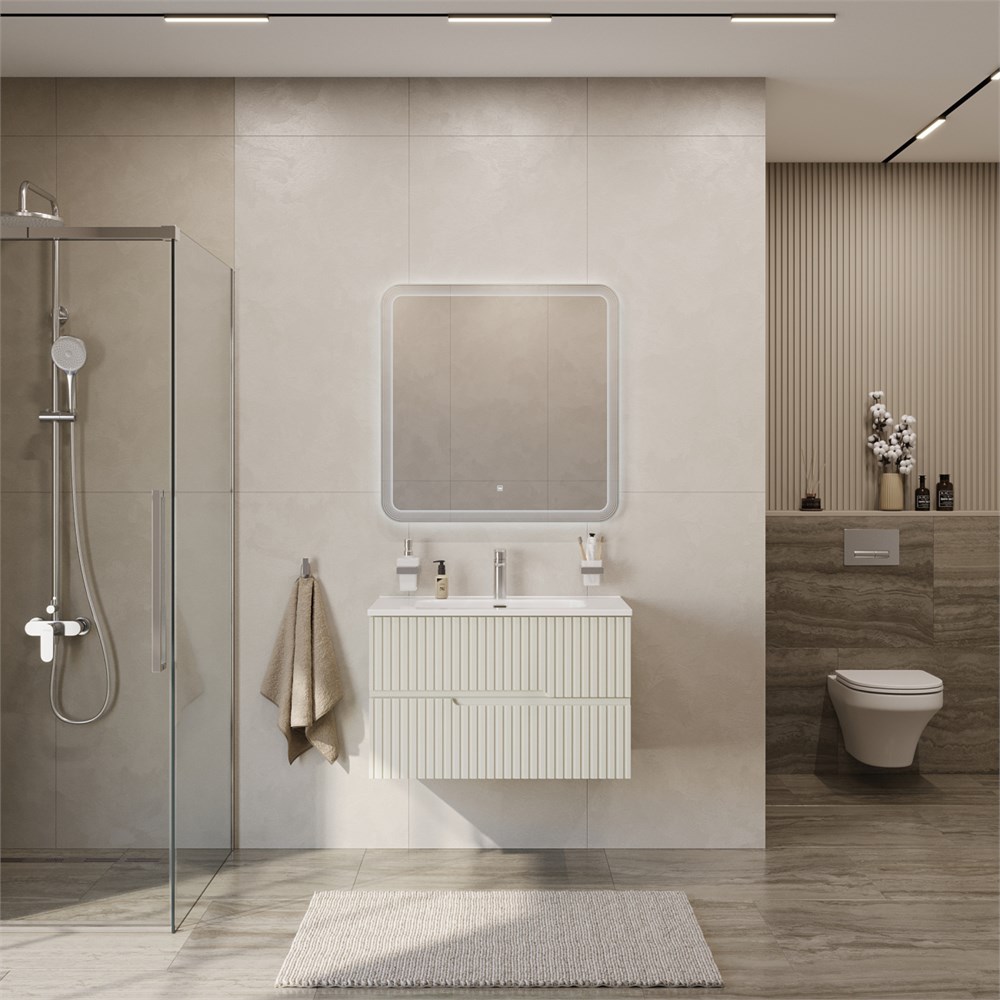 Тумба с раковиной подвесная CEZARES DUET-N 80 Альпака Брашированная, раковина белая CZR-8095-80