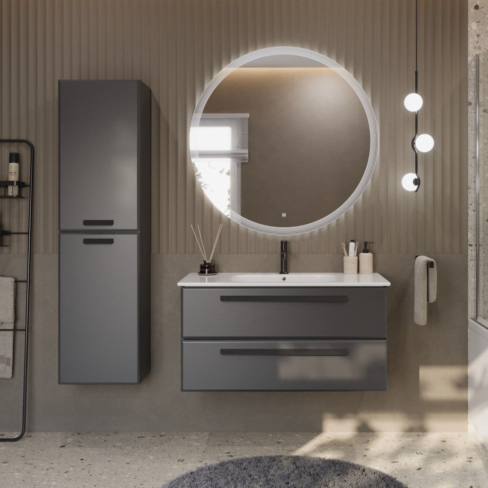 Тумба с раковиной подвесная CEZARES ECO-CER 100 Grafito, раковина белая