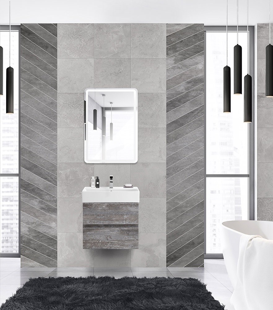 Тумба с раковиной подвесная CEZARES MOLVENO 46 60 Legno Grigio, раковина белая