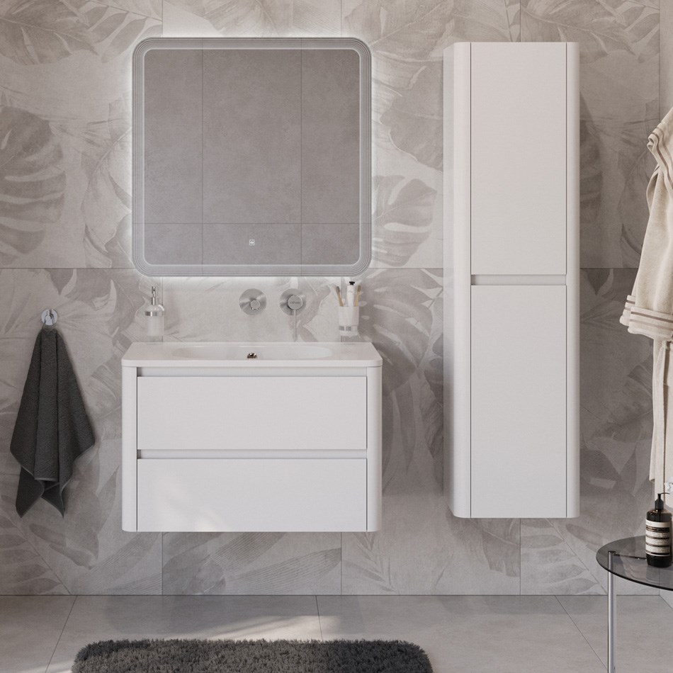Тумба с раковиной подвесная CEZARES RELAX 80 Bianco Lucido, раковина белая без отверстия под смеситель