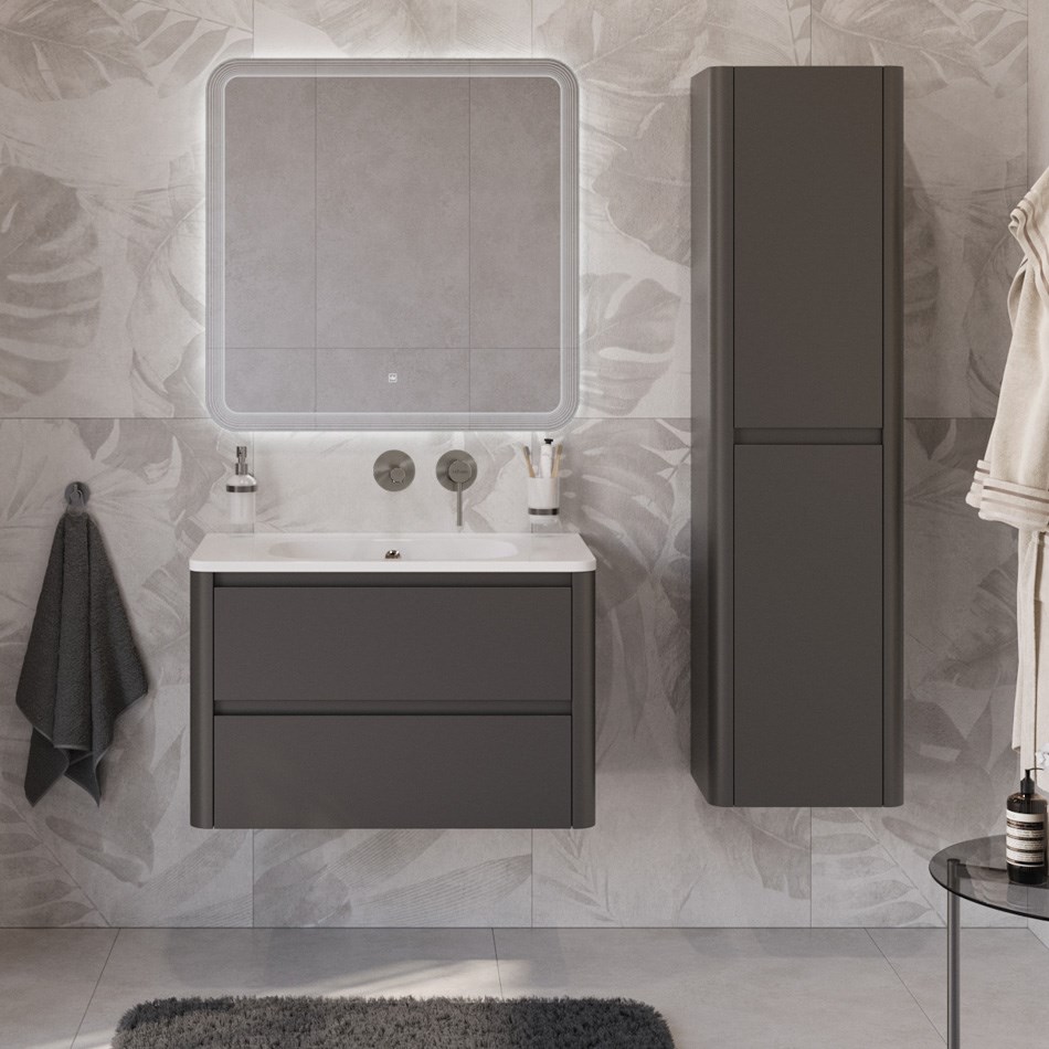 Тумба с раковиной подвесная CEZARES RELAX 80 Оружейная сталь, раковина белая без отверстия под смеситель