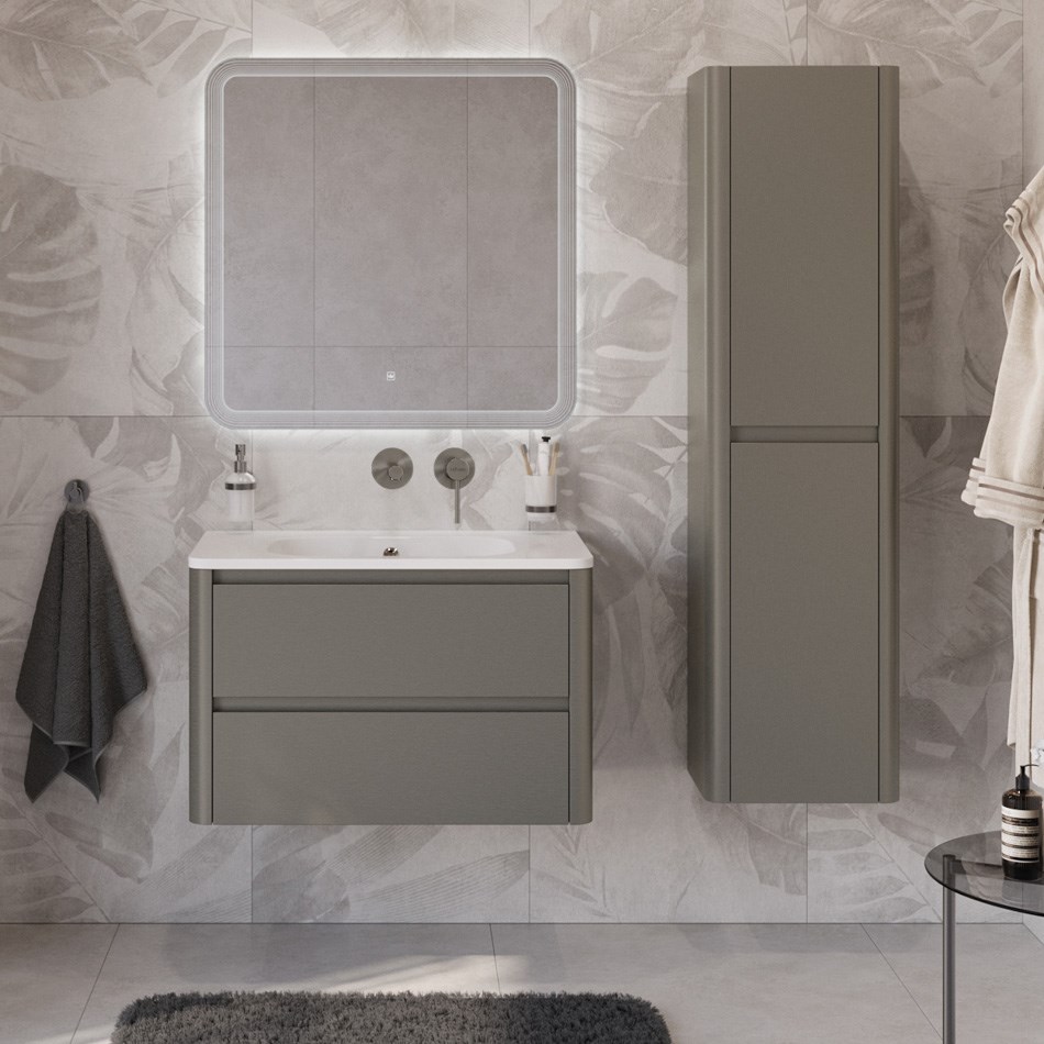 Тумба с раковиной подвесная CEZARES RELAX 80 Сатин, раковина белая без отверстия под смеситель