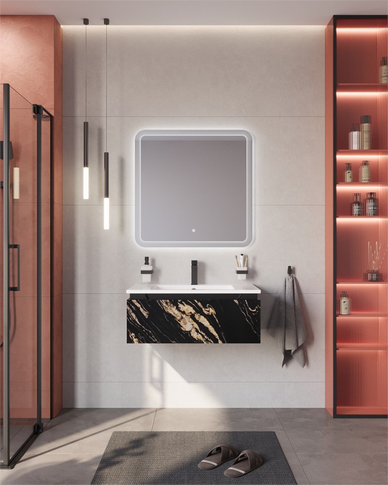 Тумба с раковиной подвесная CEZARES SLIDER 80 Черный фьюжн, раковина белая
