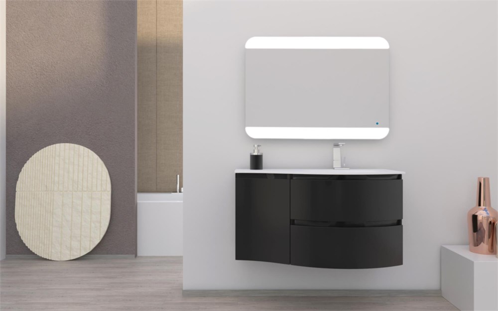 Тумба с раковиной подвесная CEZARES VAGUE 104 Nero Opaco, правосторонняя