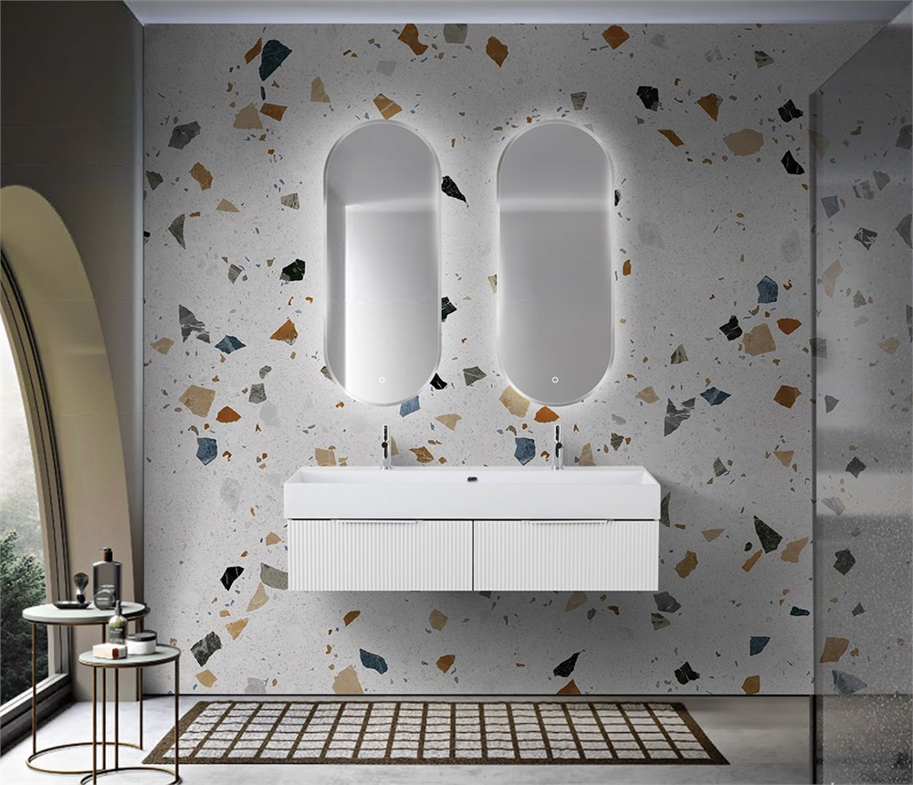 Тумба с раковиной подвесная и двумя выдвижными ящиками CEZARES PREMIUM 120 Plisse Bianco opaco, раковина белая