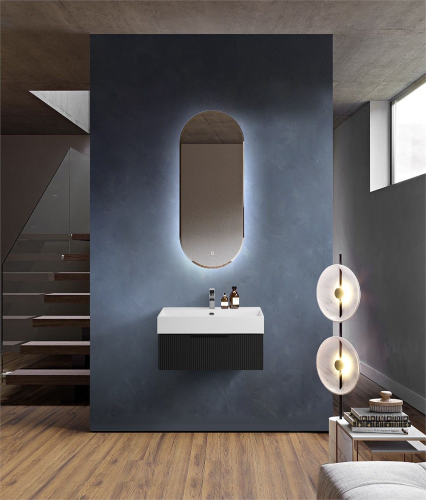 Тумба с раковиной подвесная и одним выдвижным ящиком CEZARES PREMIUM 70 Plisse Nero opaco, раковина белая