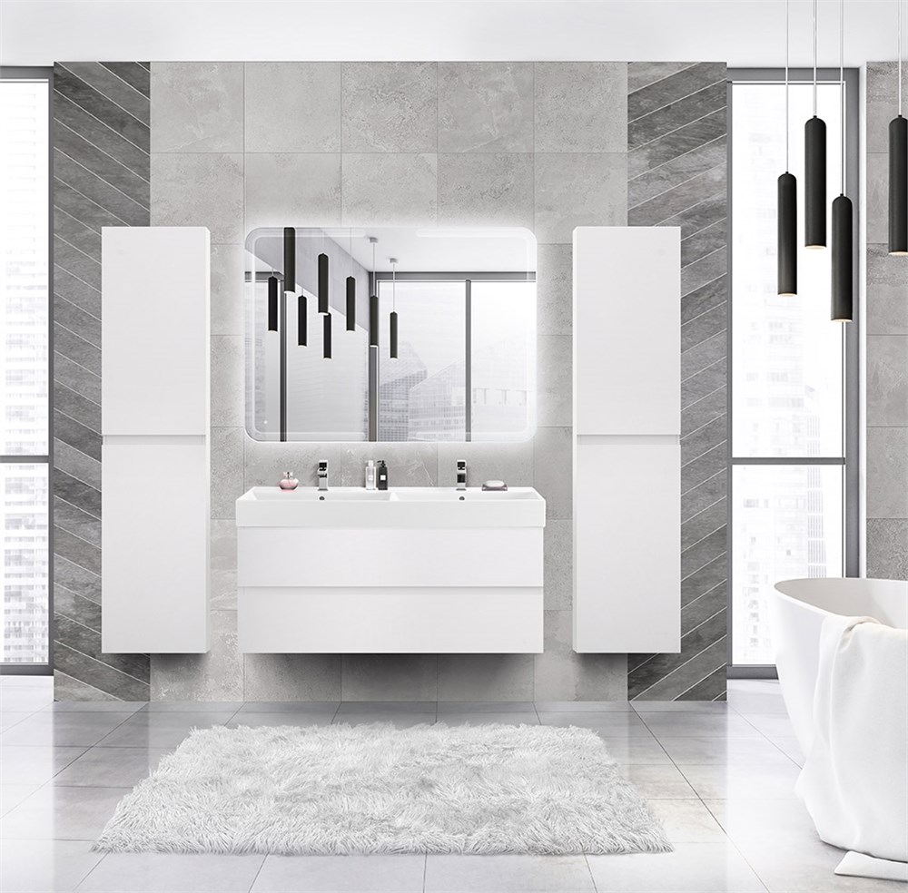 Тумба с раковиной подвесная на две чаши CEZARES MOLVENO 46 120 Bianco Ghiaccio, раковина белая