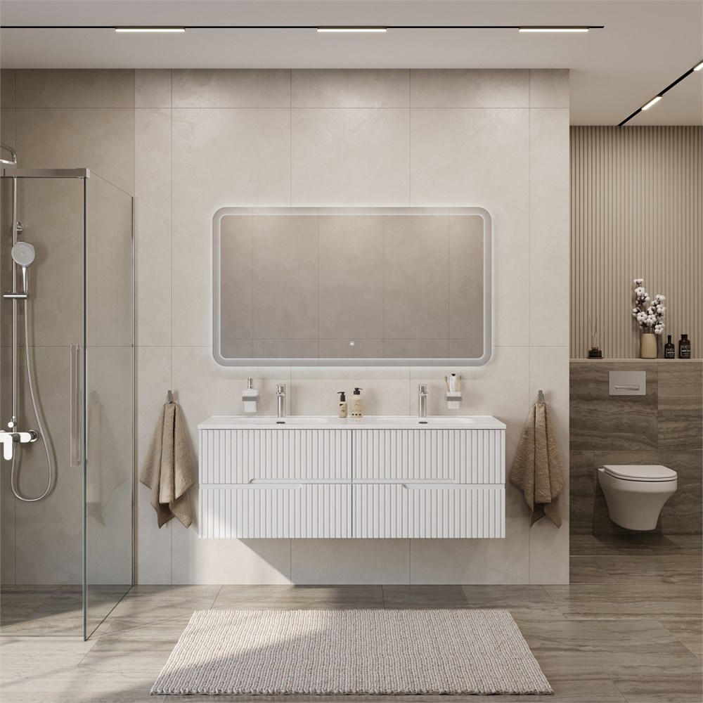 Тумба с раковиной подвесная с четырьмя ящиками CEZARES DUET-N 140 Bianco Lucido, раковина белая с двумя чашами CZR-8095-140-2
