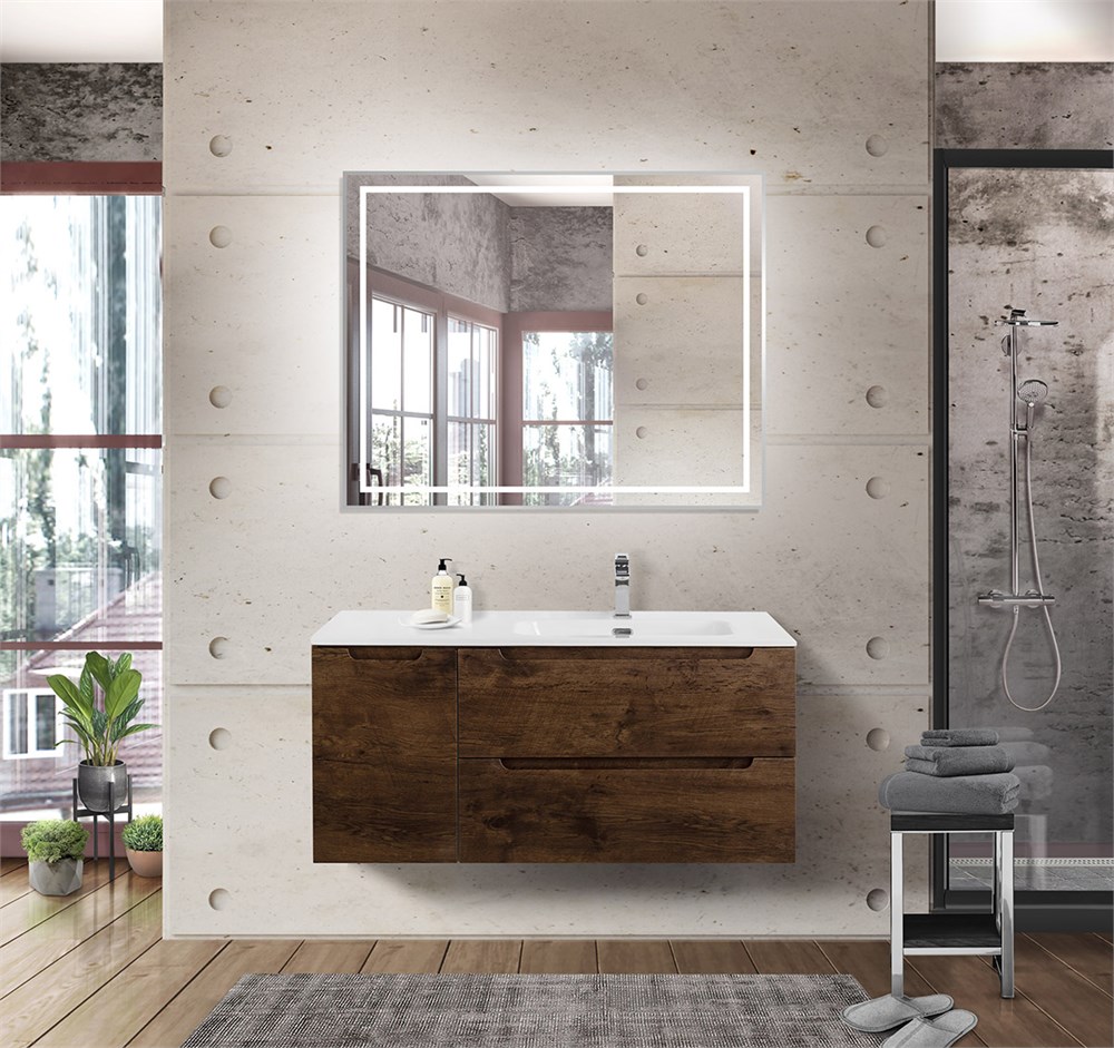 Тумба с раковиной подвесная с двумя ящиками и одной дверцей BelBagno ETNA 100 Rovere Moro правая, раковина белая