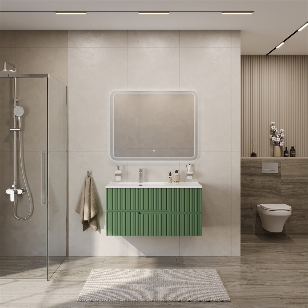 Тумба с раковиной подвесная с двумя ящиками, левосторонняя CEZARES DUET-N 100 Фисташковый Софт, раковина белая CZR-8095-100-L