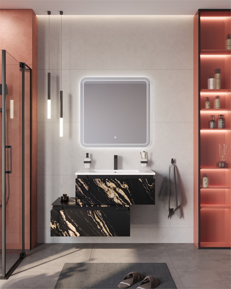 Тумба с раковиной подвесная с нижней тумбой CEZARES SLIDER 80 Черный фьюжн, раковина белая