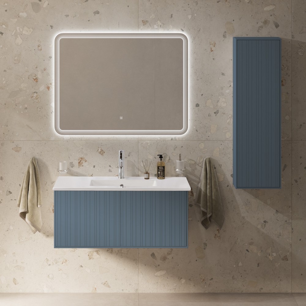 Тумба с раковиной подвесная с выдвижными ящиками CEZARES PORTOFINO 100 Blu Avio, раковина белая CZR-8002-100