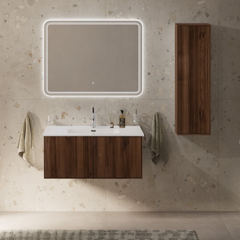 Тумба с раковиной подвесная с выдвижными ящиками CEZARES PORTOFINO 100 Noce, раковина белая 50200