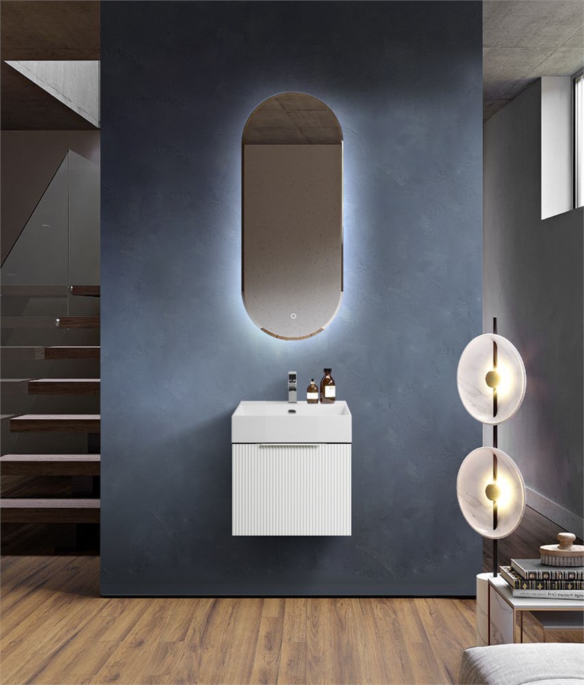 Тумба с раковиной подвесная выдвижными ящиком и внутренним ящиком CEZARES PREMIUM 50 Plisse Bianco opaco, раковина белая