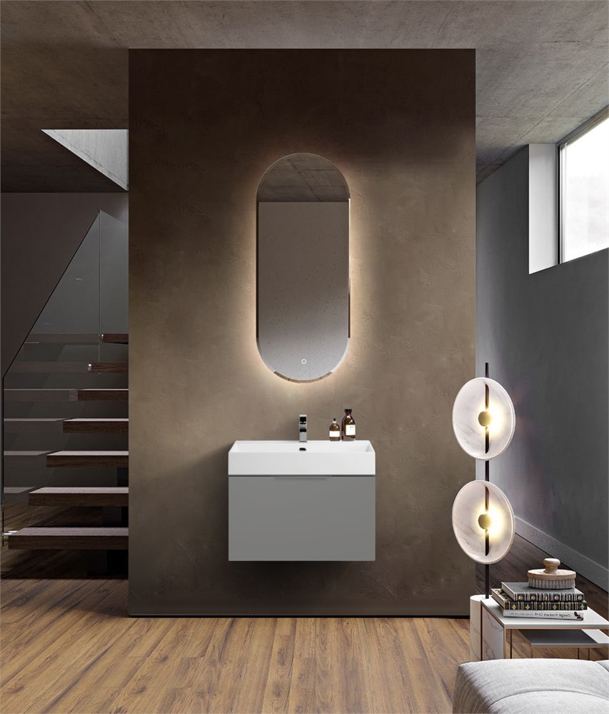 Тумба с раковиной подвесная выдвижными ящиком и внутренним ящиком CEZARES PREMIUM 70 Grigio nuvola, раковина белая