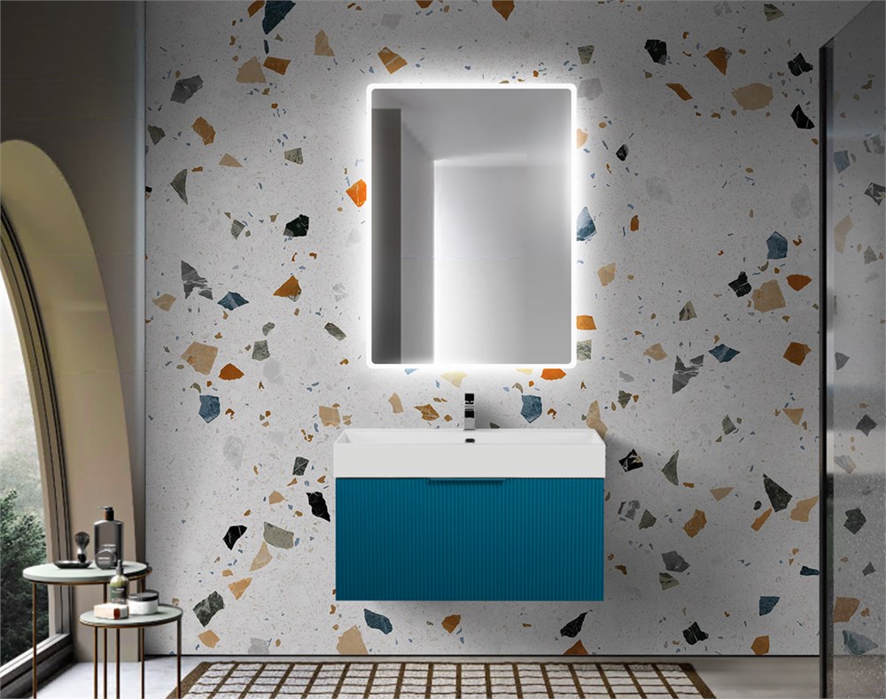 Тумба с раковиной подвесная выдвижными ящиком и внутренним ящиком CEZARES PREMIUM 90 Plisse Blu petrolio, раковина белая