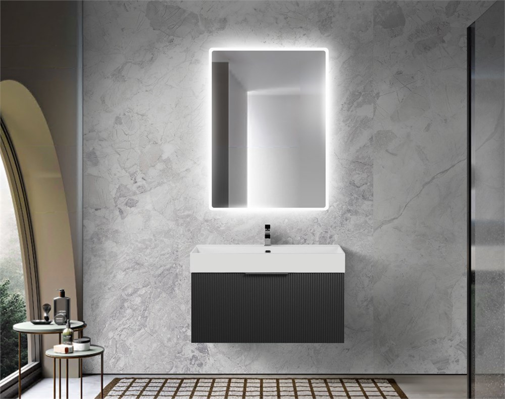 Тумба с раковиной подвесная выдвижными ящиком и внутренним ящиком CEZARES PREMIUM 90 Plisse Nero opaco, раковина белая