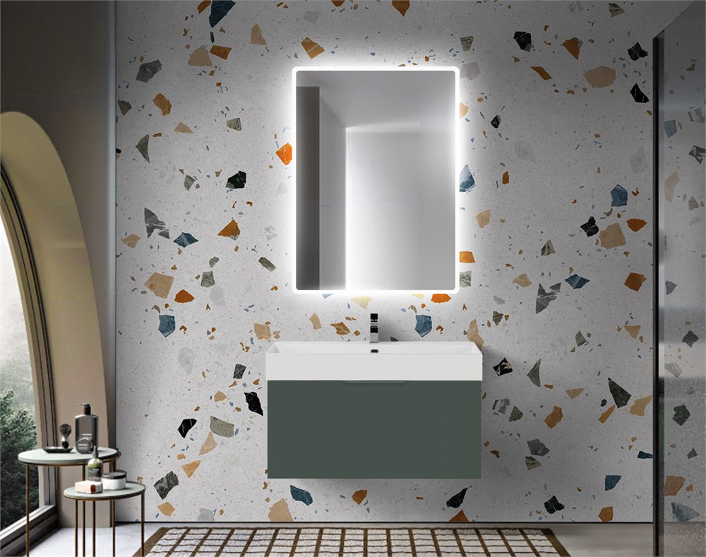 Тумба с раковиной подвесная выдвижными ящиком и внутренним ящиком CEZARES PREMIUM 90 Verde opaco, раковина белая