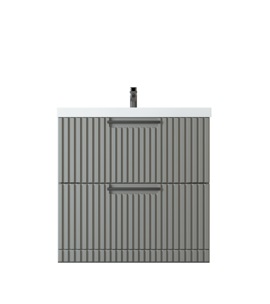 Глубокая вертикальная фрезеровка фасадов придает уникальность тумбе и создает объем, что является очень интересным дизайнерским решением.
