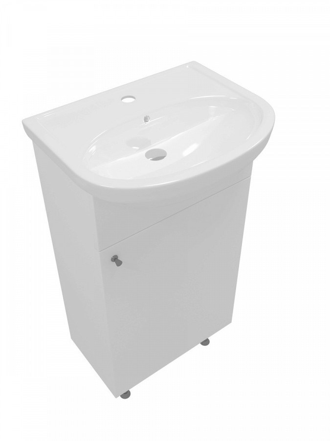 Тумба с раковиной Teymi Lori 45 правая – эффективное решение для ванной комнаты небольшого размера. Тумба произведена в России по заказу и под полным технологическим контролем известного финского бренда Teymi. Тумба продаётся в комплекте с раковиной Rosa УЮТ 45 (460х350мм). Вы также можете приобрести отдельно тумбу без раковины, артикул на сайте T60502.