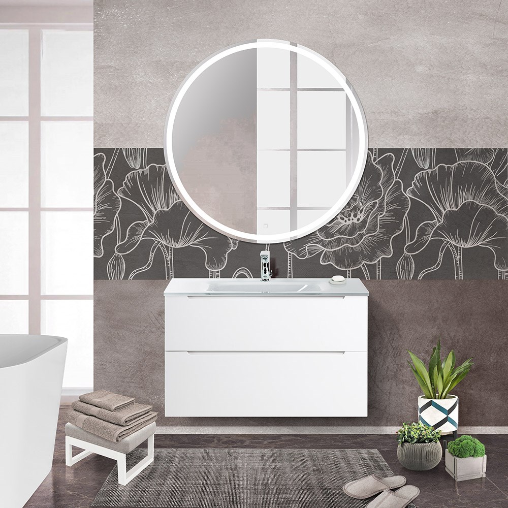Тумба со стеклянной раковиной подвесная BelBagno ETNA-H60 90 Bianco Lucido, раковина белая