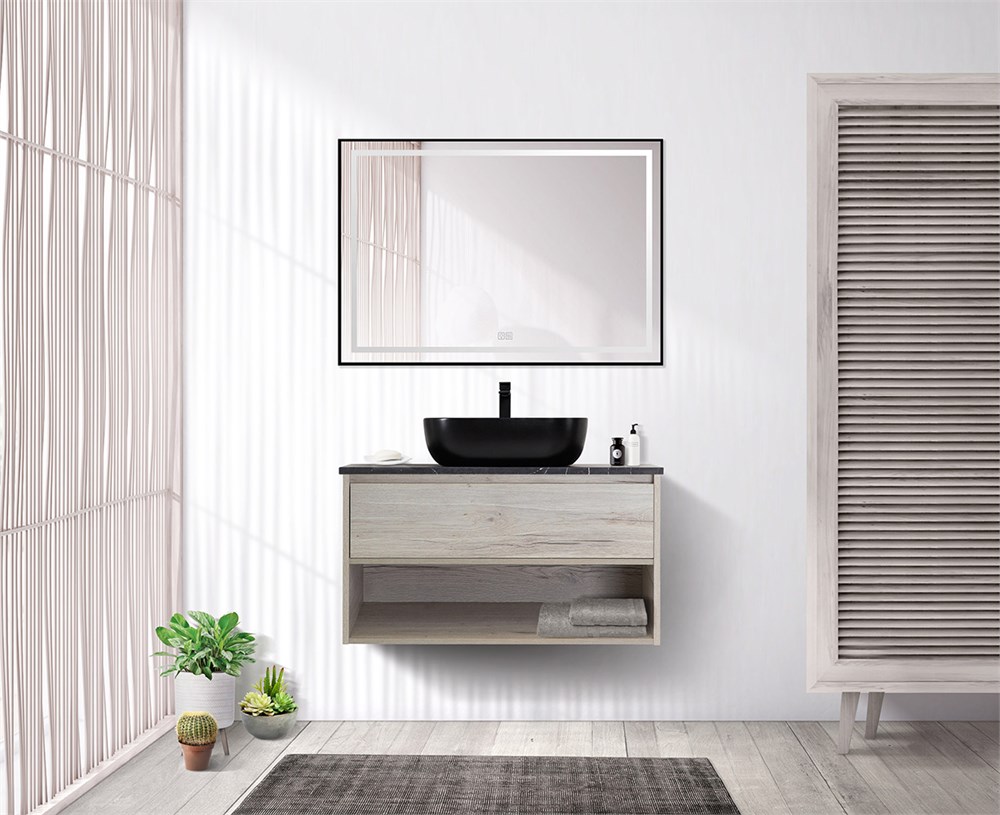 Тумба со столешницей, одним ящиком и одной открытой полкой подвесная BelBagno KRAFT 80 Rovere Galifax Bianco