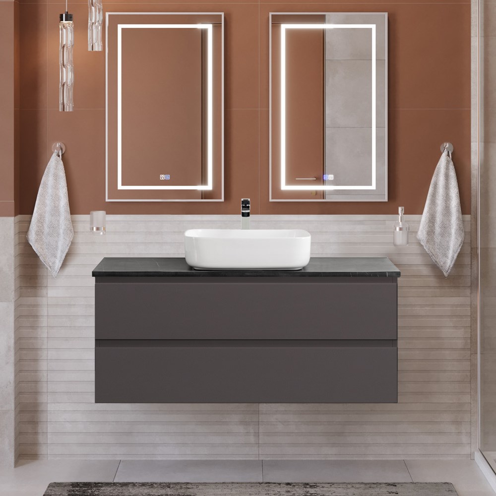 Тумба со столешницей подвесная BelBagno KRAFT 120 Темно-Серый Матовый, столешница KEP-120-MNO