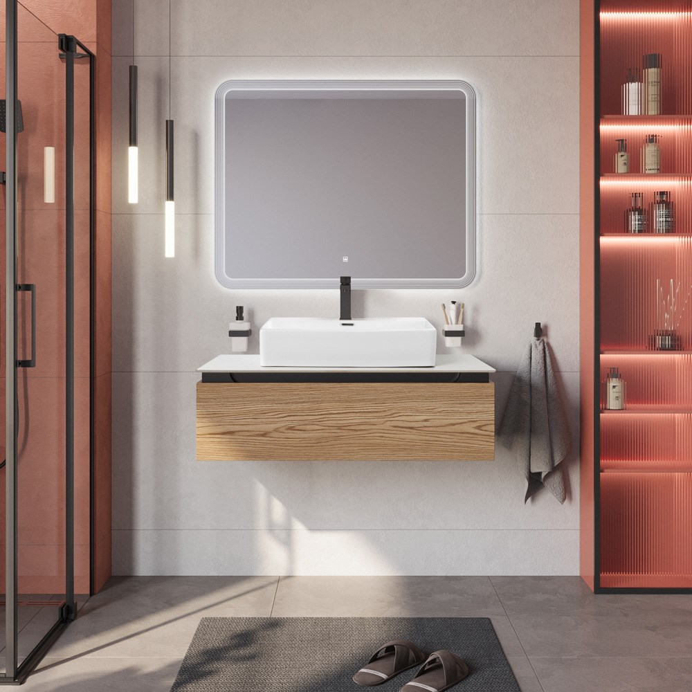 Тумба со столешницей подвесная CEZARES SLIDER 100 Дуб тангент, столешница SLD-100/48-BO
