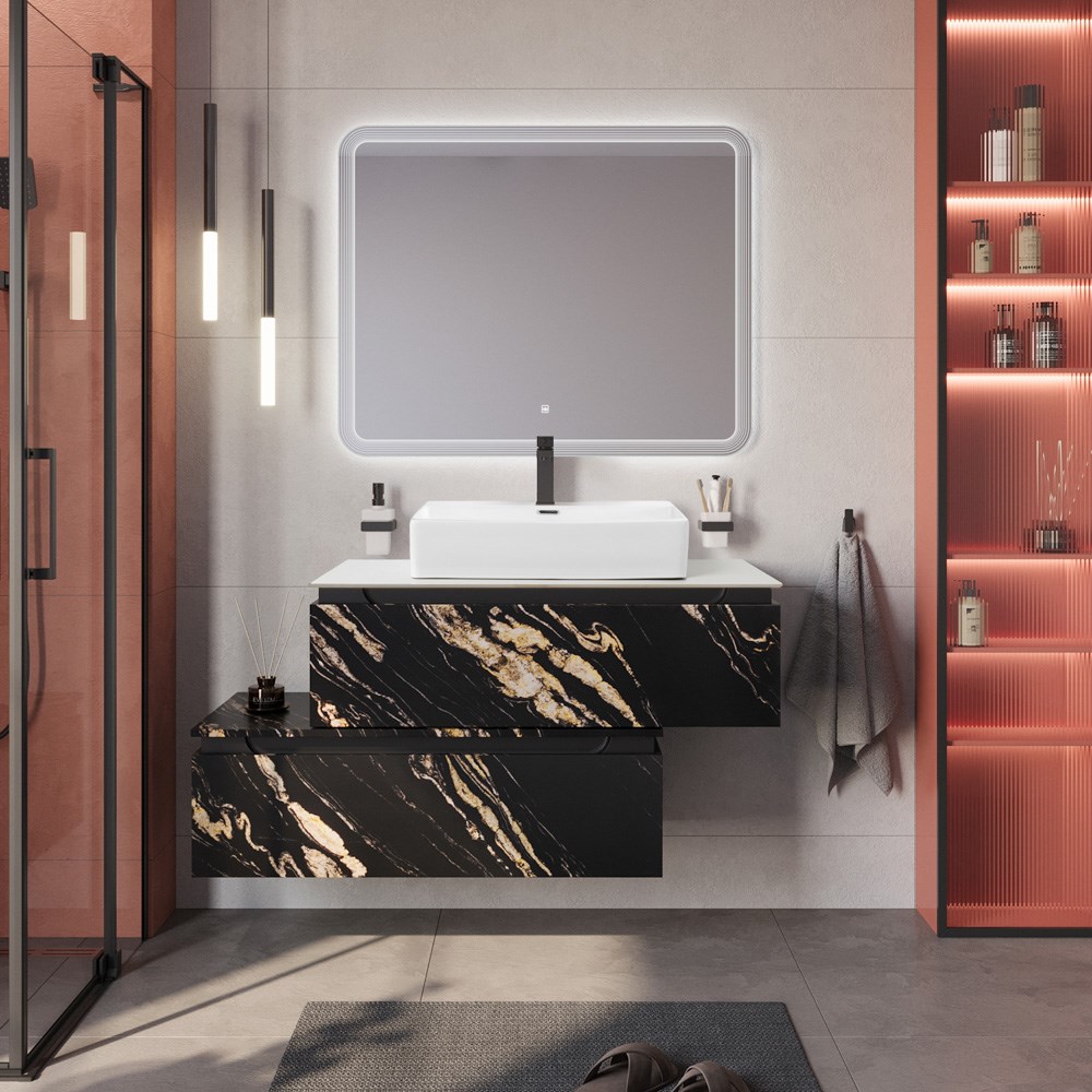 Тумба со столешницей подвесная и нижней тумбой CEZARES SLIDER 100 Чёрный фьюжн, столешница SLD-100/48-BO
