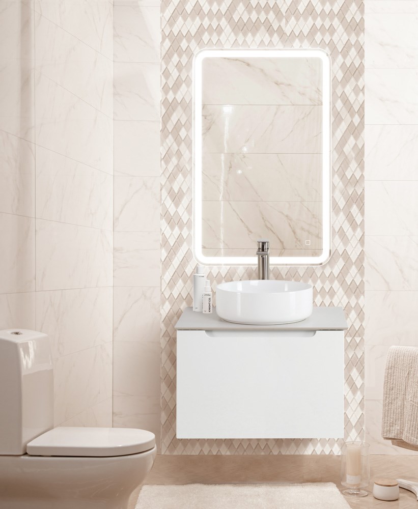 Тумба со столешницей подвесная с одним ящиком BelBagno ETNA 60 Bianco Lucido, раковина белая