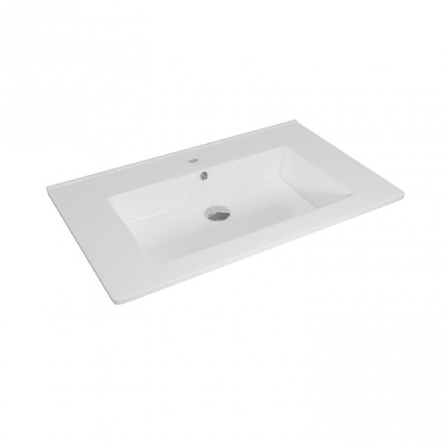 Прямоугольная мебельная раковина Оскар" устанавливается на мебель, имеет отверстие для смесителя и систему перелива с декоративным кольцом."