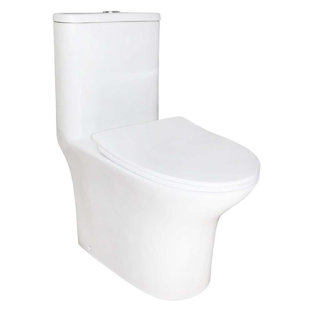 Унитаз-моноблок с функцией биде AZARIO Sente 375х665х785 напольный, безободковый, горизонтальный слив, сиденье дюропласт микролифт (AZ-8614B)